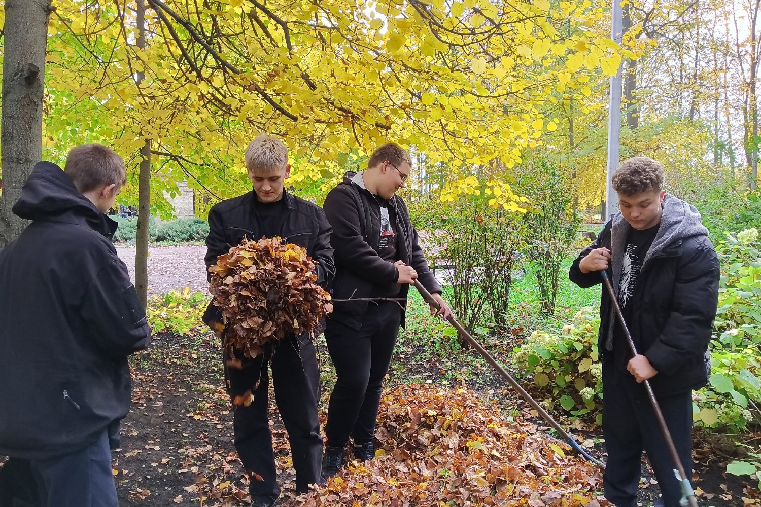 В едином порыве сделать любимое место отдыха староюрьевцев ещё прекраснее ученики и учителя дружно взялись за дело. В умелых шустрых руках грабли и мётлы быстро сметали огромные кучи разноцветных осенних листьев. А в разных уголках парка быстро вырастали горы набитых листвой мешков, которые позже были вывезены.