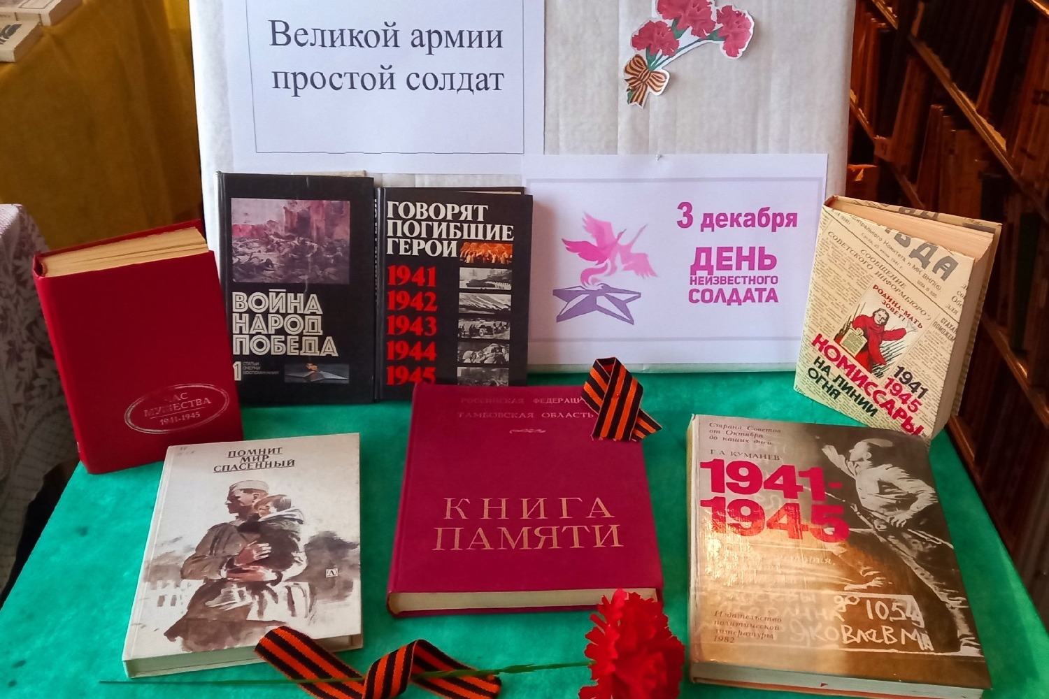 В Новоюрьевской сельской библиотеке к памятной дате подготовили книжную выставку «Великой армии простой солдат». На ней представлены книги о Великой Отечественной войне — о подвигах советских людей, о мужестве и самоотверженности тех, кто защищал родную землю.