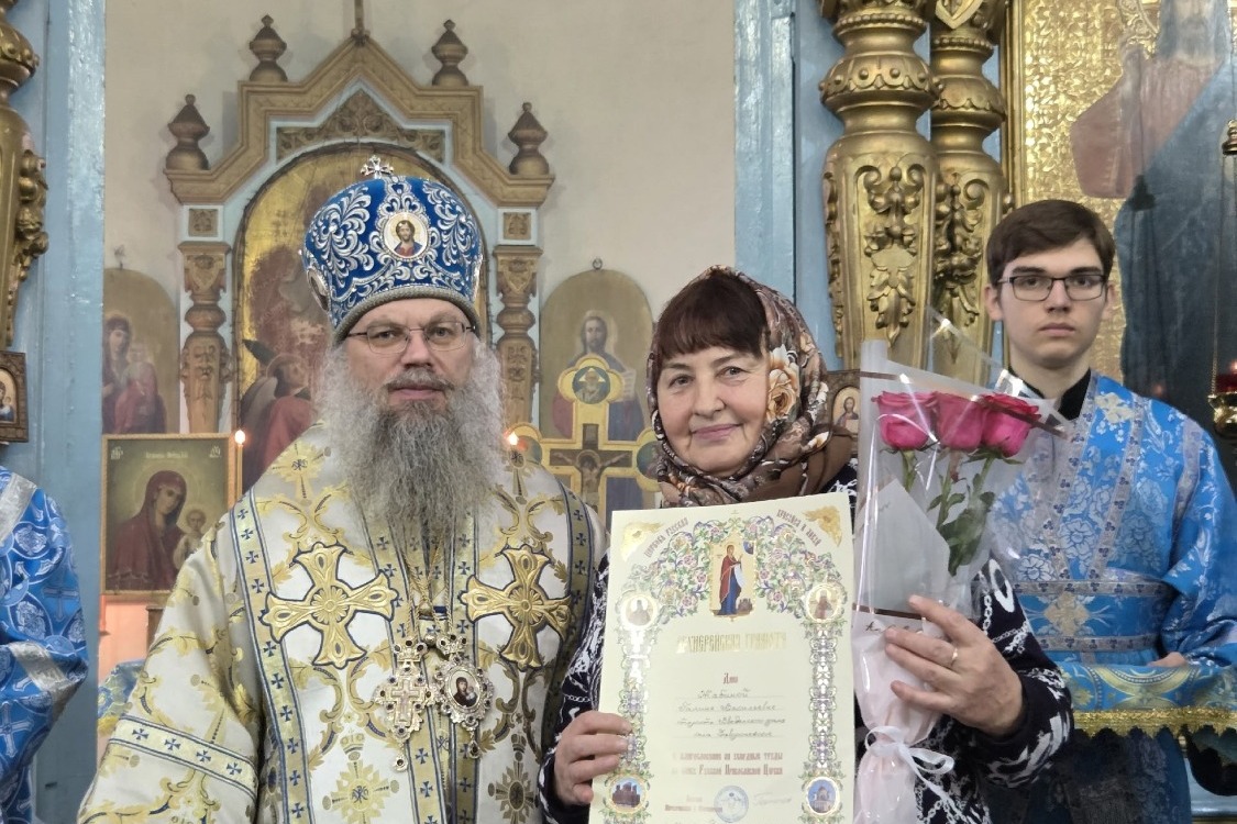 За Божественной литургией были вознесены молитвы о защитниках Отечества, совершён крестный ход, а наиболее отличившиеся прихожане и благотворители получили епархиальные награды.